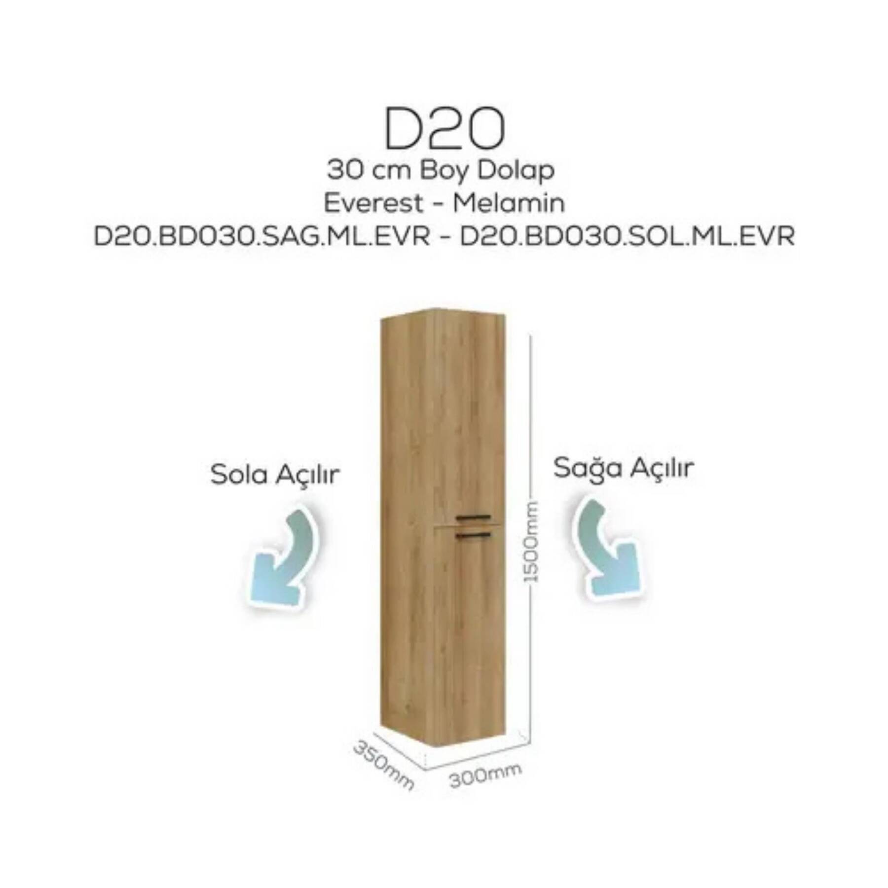 Creavit D20 Sağa Açılır Boy Dolabı Everest – Doğallığın Modern Yorumu