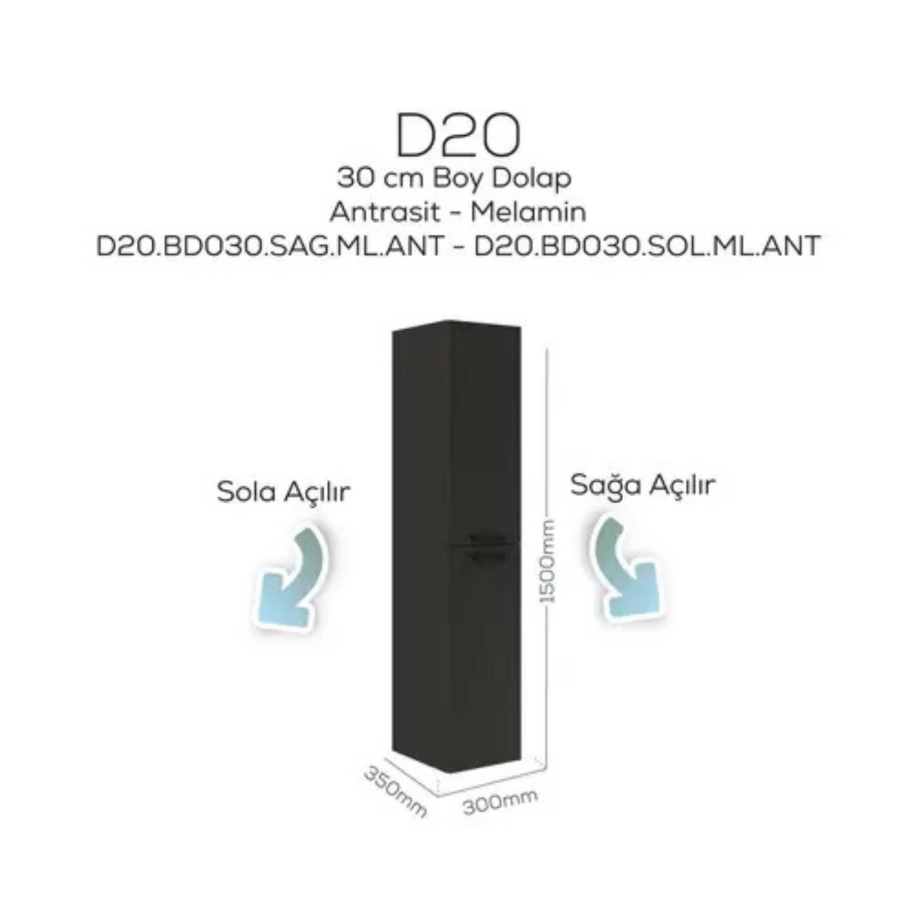 Creavit D20 Sola Açılır Boy Dolabı Antrasit – Şık ve Fonksiyonel Banyo Dolabı