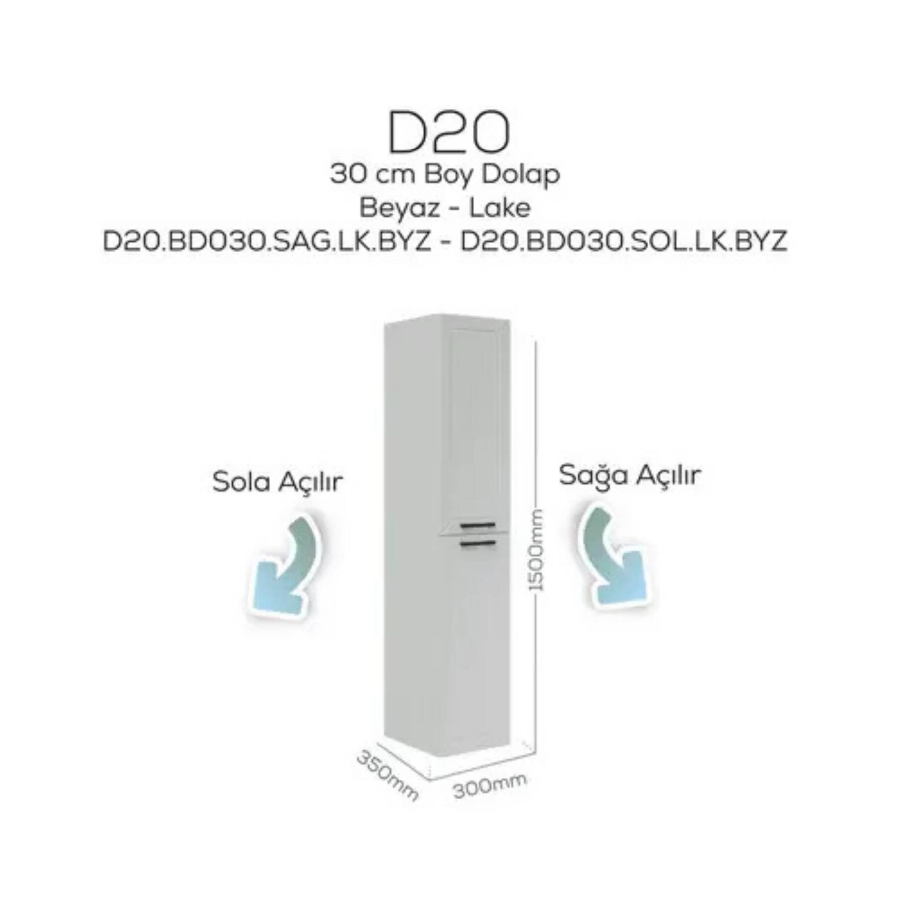 Creavit D20 Sola Açılır Asma Boy Dolabı Beyaz – Modern ve Fonksiyonel Banyo Dolabı