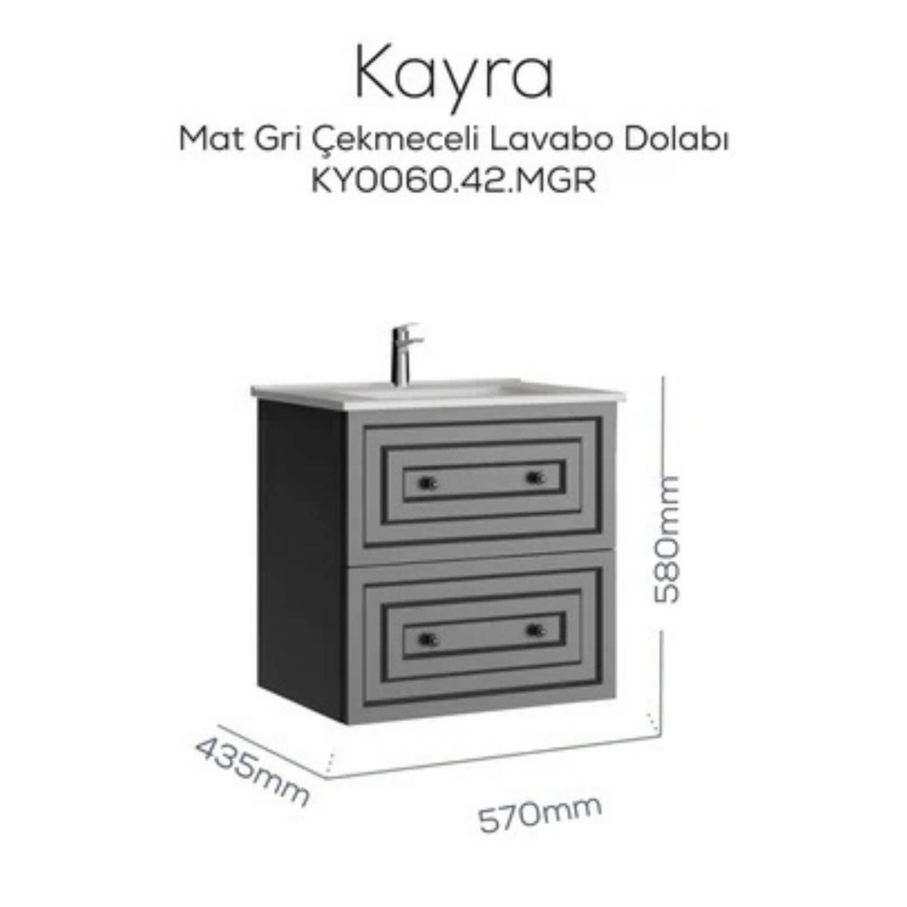Hem estetik hem de işlevsel bir lavabolu dolap arıyorsanız, Creavit Kayra Mat Gri çekmeceli modeli ile banyonuza düzen ve modernlik katabilirsiniz.